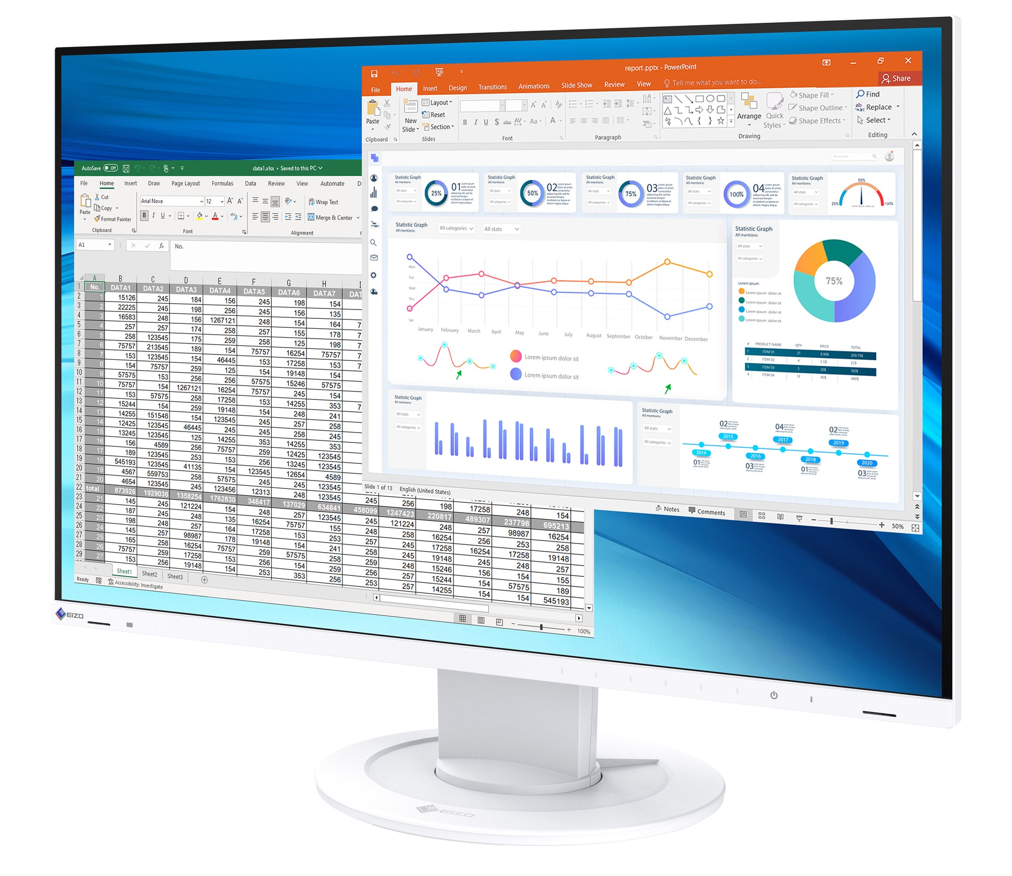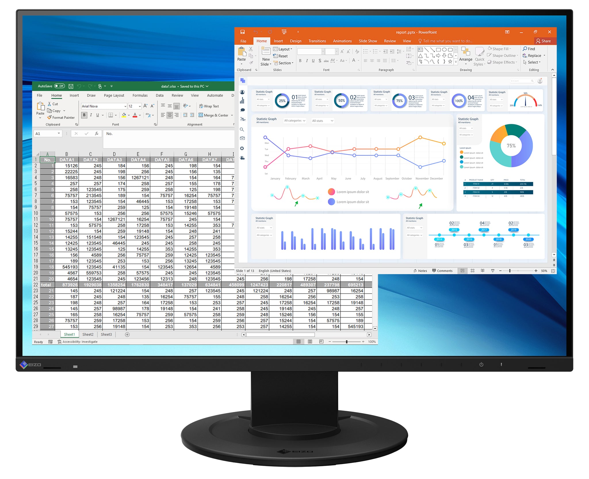 The 24.1-inch monitor, when used with a 14-inch laptop for example, effectively triples the screen space available to you. This improves efficiency by reducing the need to scroll or switch windows frequently.